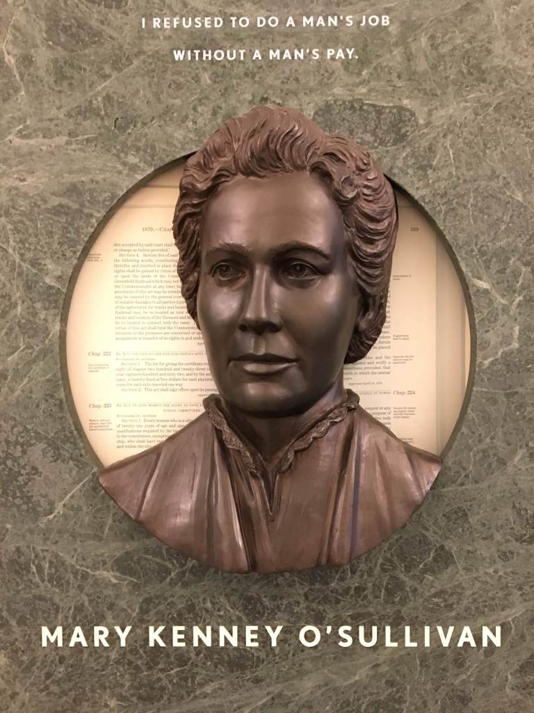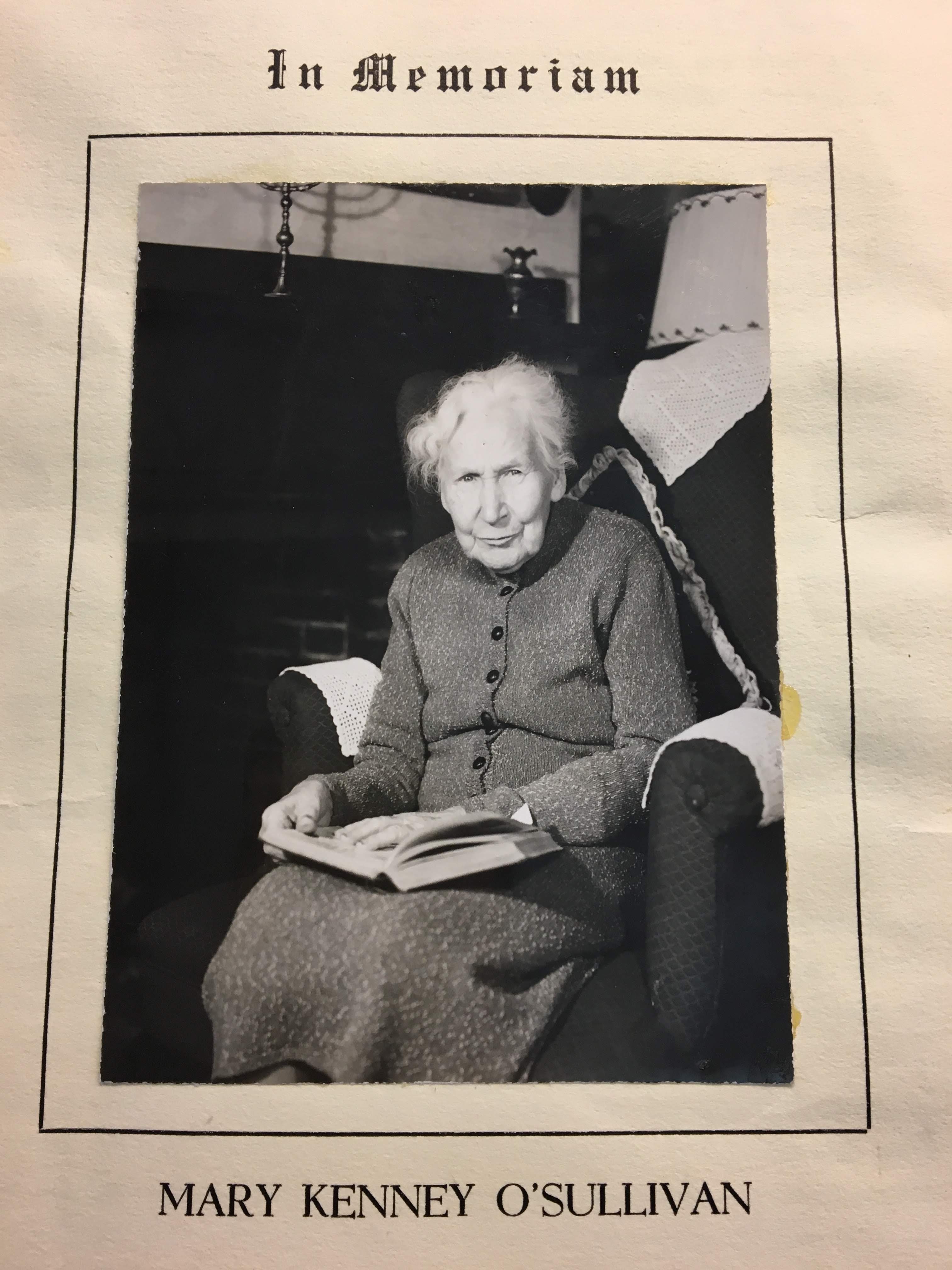 Mary Kenney’s rise to fame, or perhaps notoriety, within women reformers’ circles, was fairly well documented due to her connection with the Hull House in Chicago, her move to Boston to work with the Women’s Educational and Industrial Union, and her marriage to labor leader and activist Jack O’Sullivan. But after Jack’s death, there is not much to go on to tell us how she initially survived as a widow with three small children. Falling back on her unpublished autobiography, I found clues about her life as a once-again wage earner and the limited opportunities open to her in Boston as a working-class single woman and sole support of her family. She had support from Jack’s friends to give her a job, and from a particular young woman of the upper class who wanted to learn how to support working people. Using these facts, I imagined what Mary, now a widow over the age of 40, might have felt as she navigated her rising fame in the world of union organizing simultaneously with the gritty reality of bread-winning in the rough-and-tumble environment of early-1900s Boston. Details below, including a sheepskin sleeping bag, a tenement house, help from a young local heiress, and a pistol under a pillow are all from Mary’s own account of her circumstances around 1906. Her thoughts about the situation are from my imagination (all rights reserved, etc., blah, blah, blah).